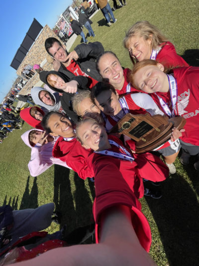 The Calvary girls cross country team had never qualified as a team for the state meet. Sr. Maddie Homfeldt entered this season as a 3-time all-state runner, but was never able to compete for a team trophy… until this year. Soph. Sonja Brunner grew by leaps and bounds as a runner in the off-season to the point where she was beating Maddie and the two pushed each other to excel throughout the season. Two volleyball players also ran cross country when they didn’t have conflicts with their primary sport. They, along with the rest of the team, won Calvary’s first girls cross country District title and went on to finish 3rd in the State in Class 1. Maddie finished as a 4-time all-stater, running the best race of her career at the state meet to finish 5th! Not far behind was Sonja finishing 7th! Maddie was quoted in the newspaper giving her younger teammate credit for her success, “A lot of kids can’t say they look up to someone… if that person is younger than them, but this season, she has been someone for me to follow,” Homfeldt said of Brunner, who finished 34th at state last season. “I followed her today. She ran amazing today, and she helped me get a good spot.”